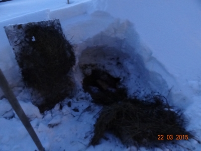 1430 бутылок 2-хлитровых (по 5,5 руб из кассы) складированы на огороде, ждут весны для изготовления 715-ти контейнеров для сеянцев. Также изображён контейнер, которых 100 штук мы купили (по 17 руб своих) из Москвы.