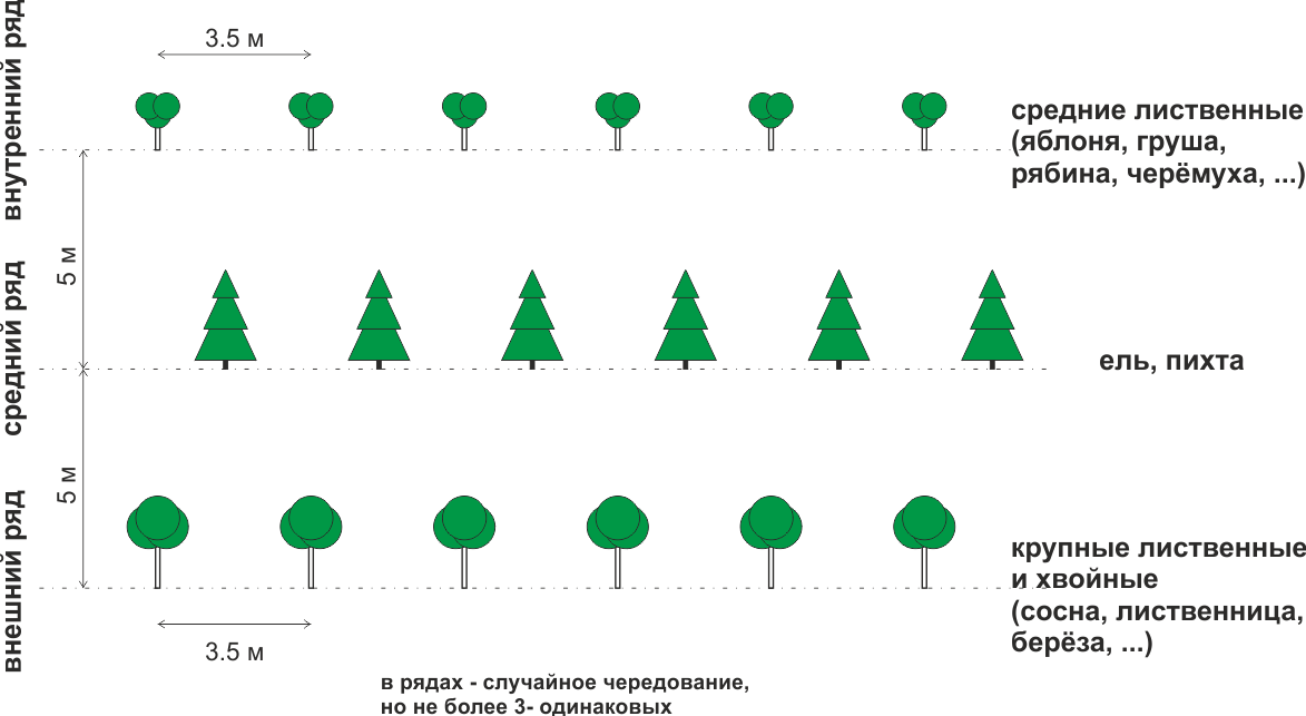 Ещё 5 вариантов лесополосы можно нарисовать по http://www.sadincentr.ru/publications/p27/default.aspx
